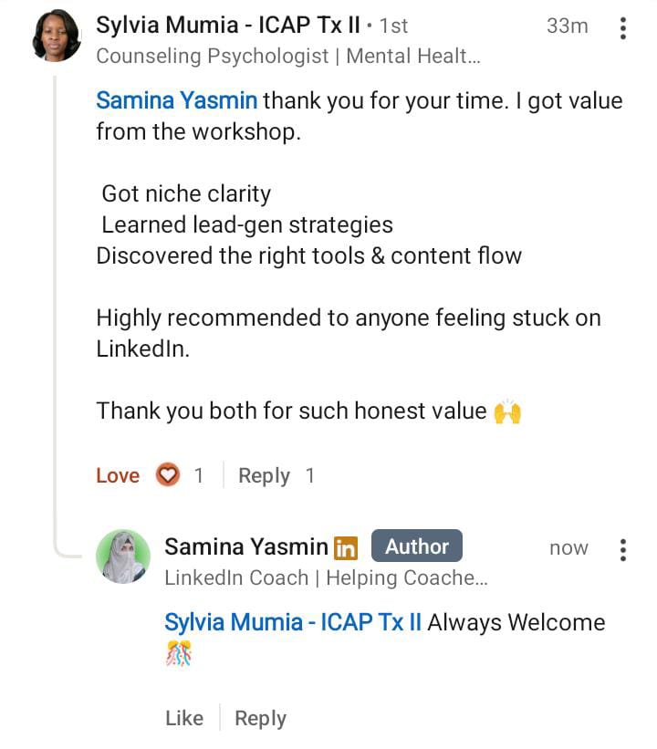 โ My expertise is in creating strong and LinkedIn-profile-enhanced content that coaches use to grow their lead generation services, so coaches never have to wonder where their next client will come from.